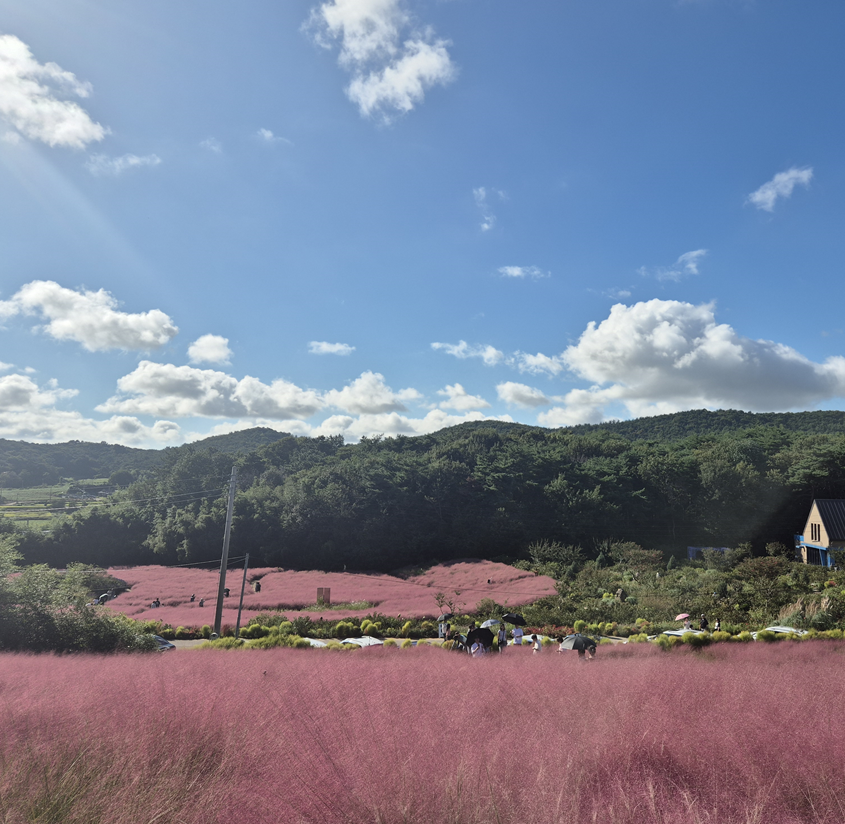 푸른 하늘과 핑크뮬리