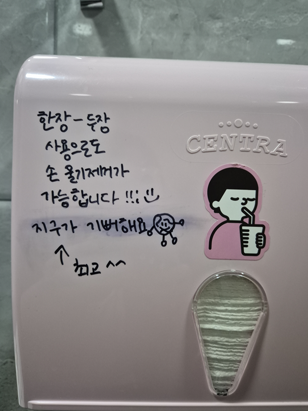 직원분들이 써놓은 지구 캐릭터가 귀여워서 찍어봤습니다