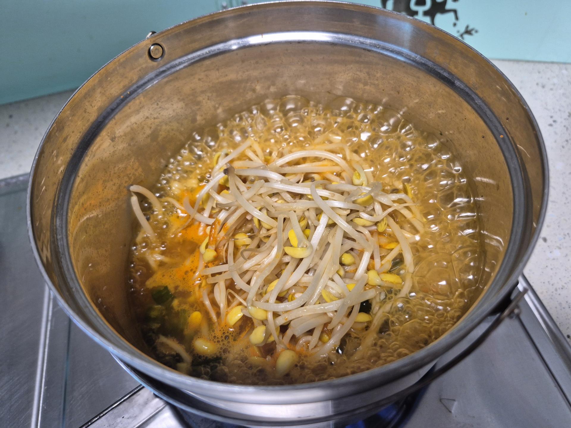 식물성라면에 콩나물 올려 한 끼 후다닥^^